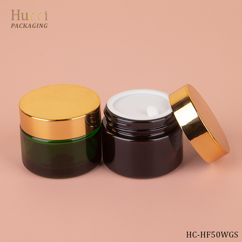 Custom 50g Cosmetic Glass Jar For Face Cream, minimum order 10,000pcs with Logo and design Printing.