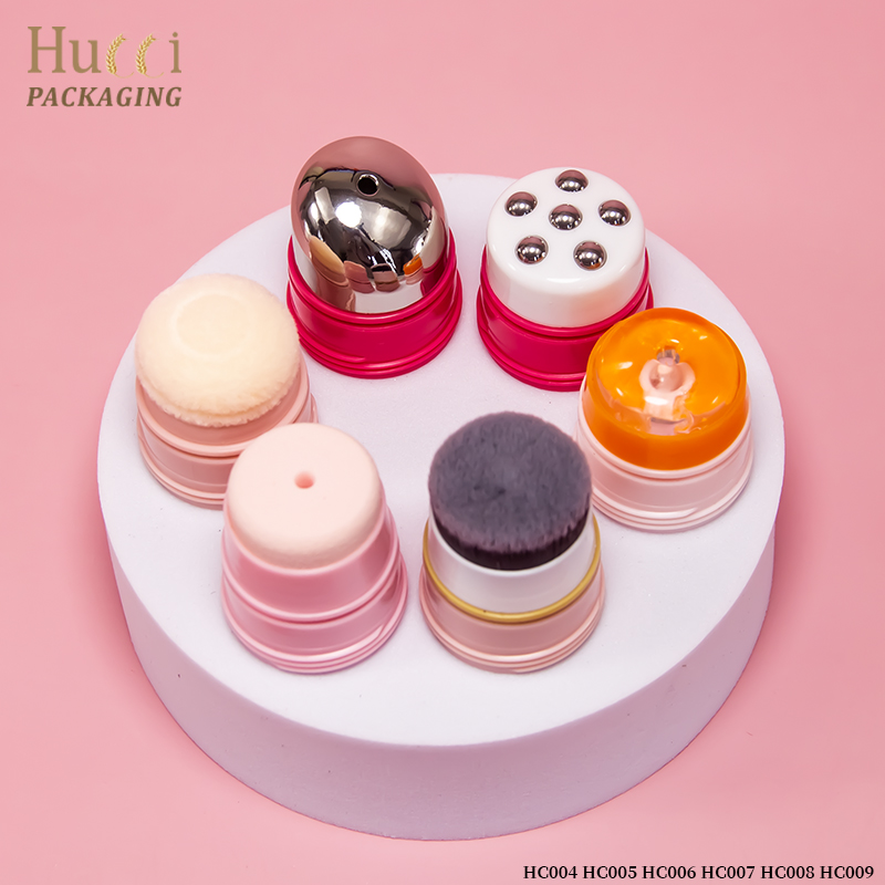 This sealed PP plastic tube offers 6 different applicator design options, namely Flat Circular Brush, plane five ball bearings, zinc alloy head, silicone head, and 2 different designs of sponge head applicators.