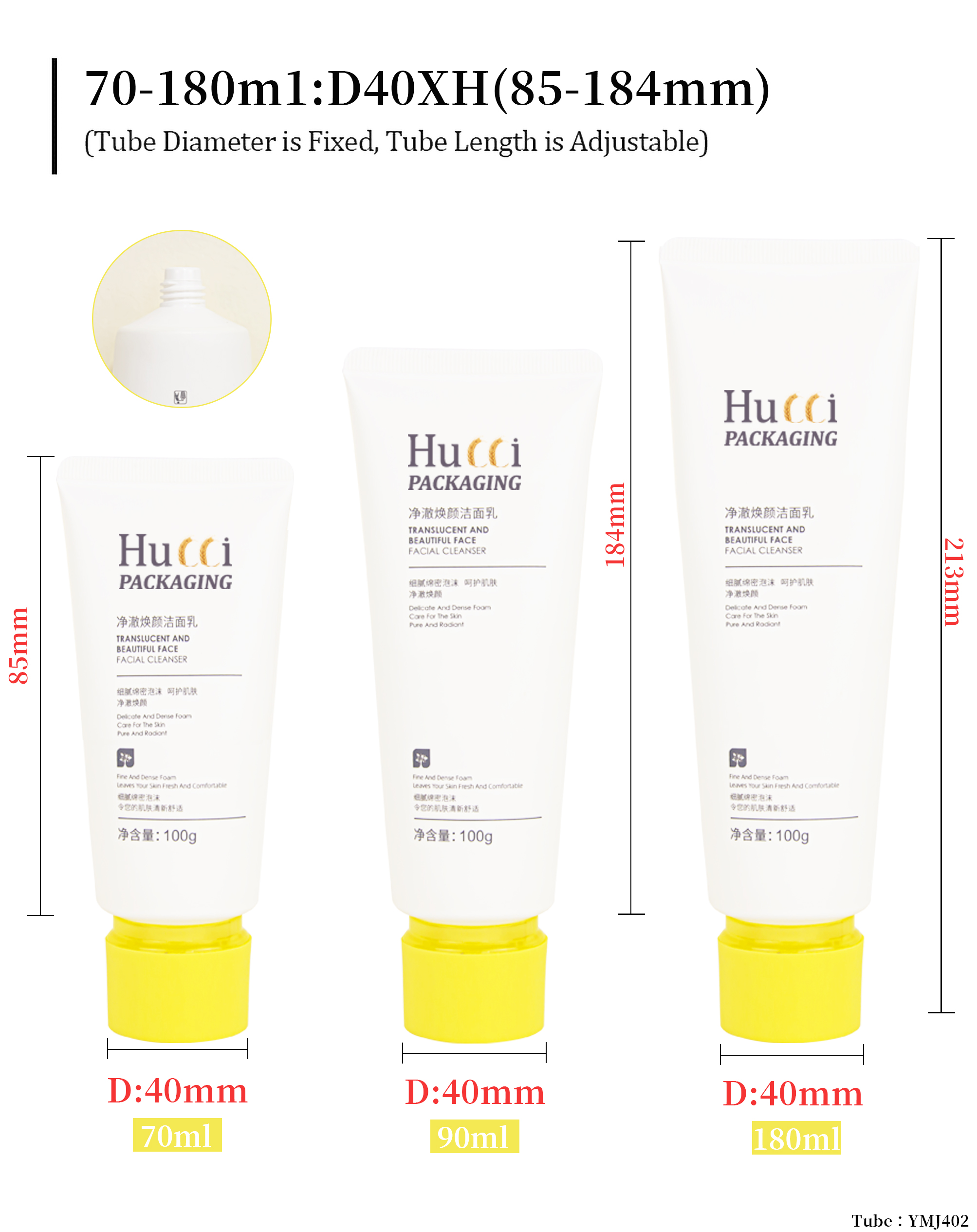 D40 PE Plastic Squeeze Tube 70ml 90ml 180ml Facial Cleanser/ Body Lotion Tube |