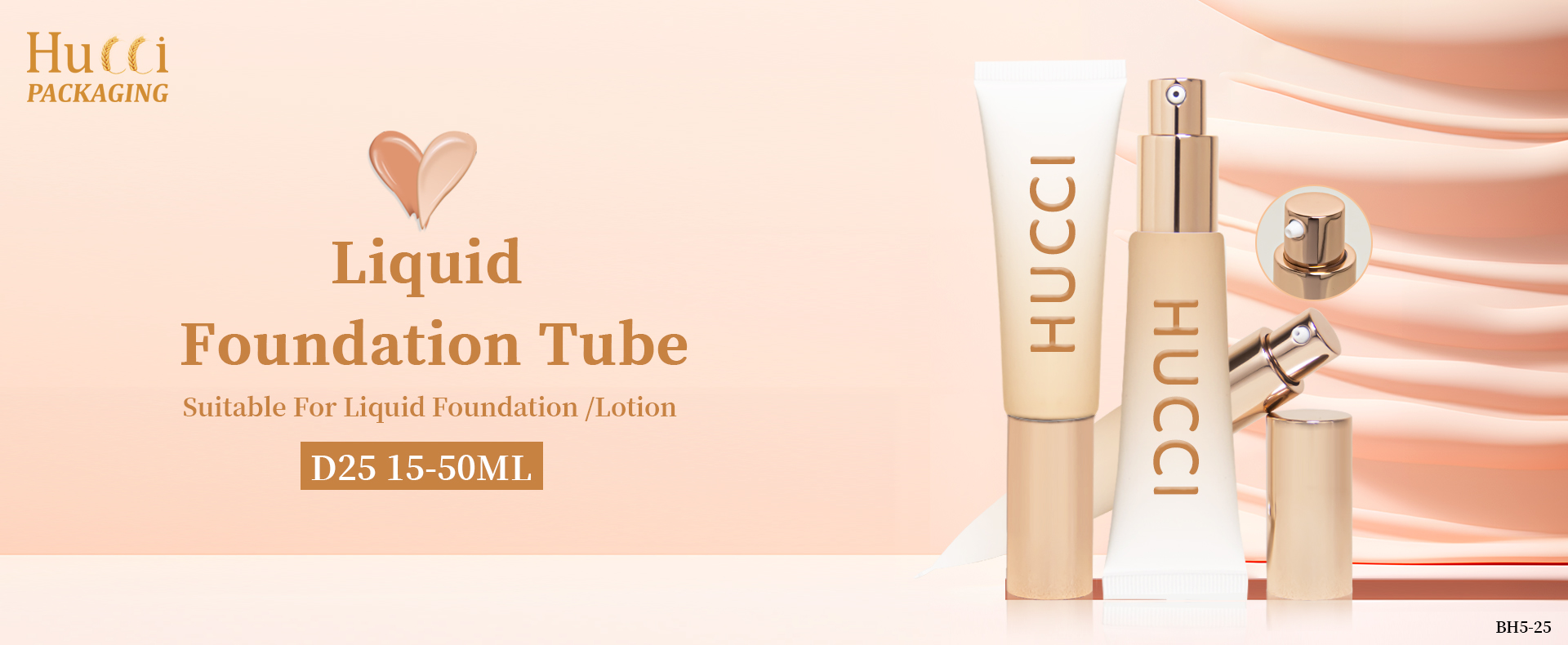 This 15-50ml Airless Pump Tube, looks very luxury and high grade, is wildly used for liquid foundation,facial serum repair cream etc. We support custom color printing and various cap choices based on MOQ 10000pcs. Custom design and moulding are also available.HUCCI produce various cosmetics tubes, if you are looking for reliable supplier. Here we are!