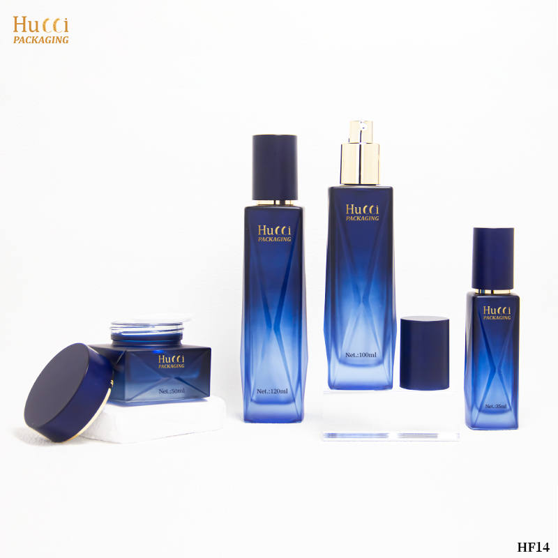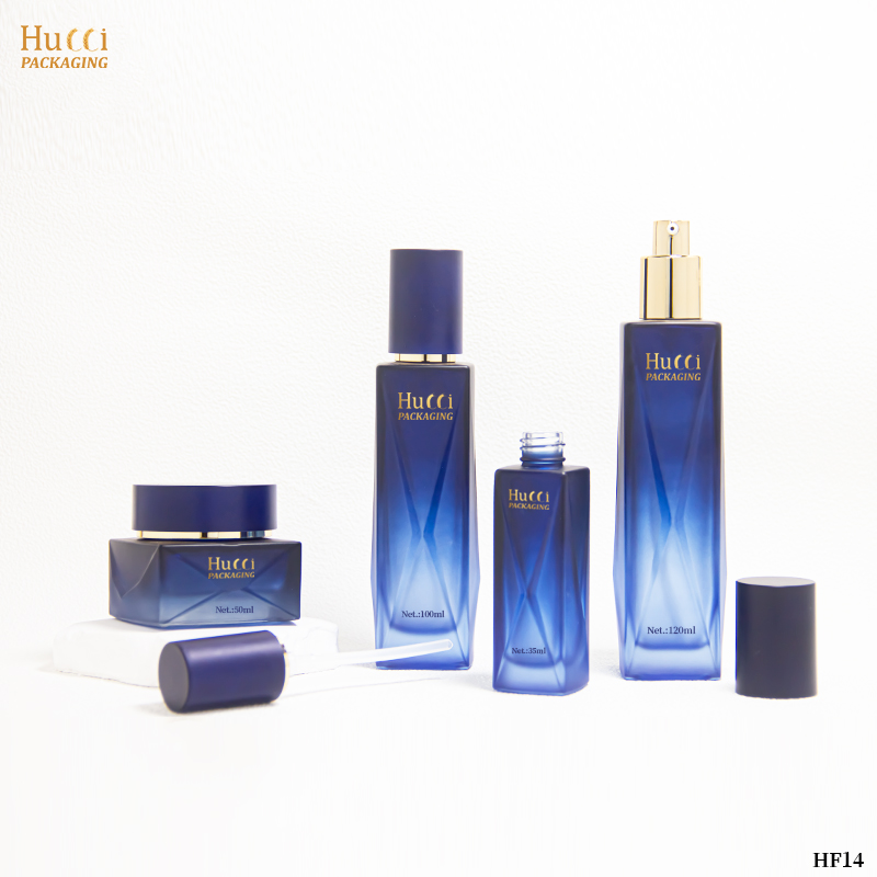 Offer sample serviceEmty Blue Gradient Skincare Glass Bottle Sets