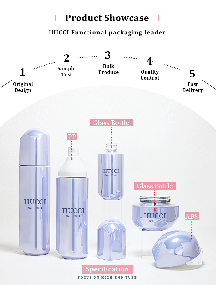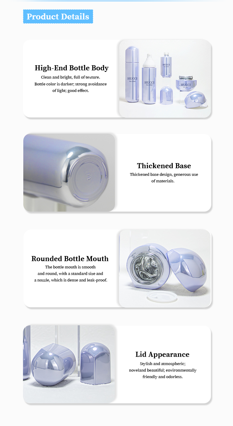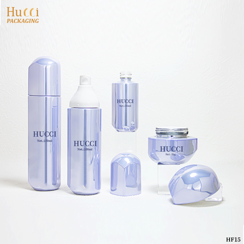 Offer sample serviceEmty Luxury Purple Hydrating Skincare Set Lotion Pump Glass Bottle 50g Face Cream Jar