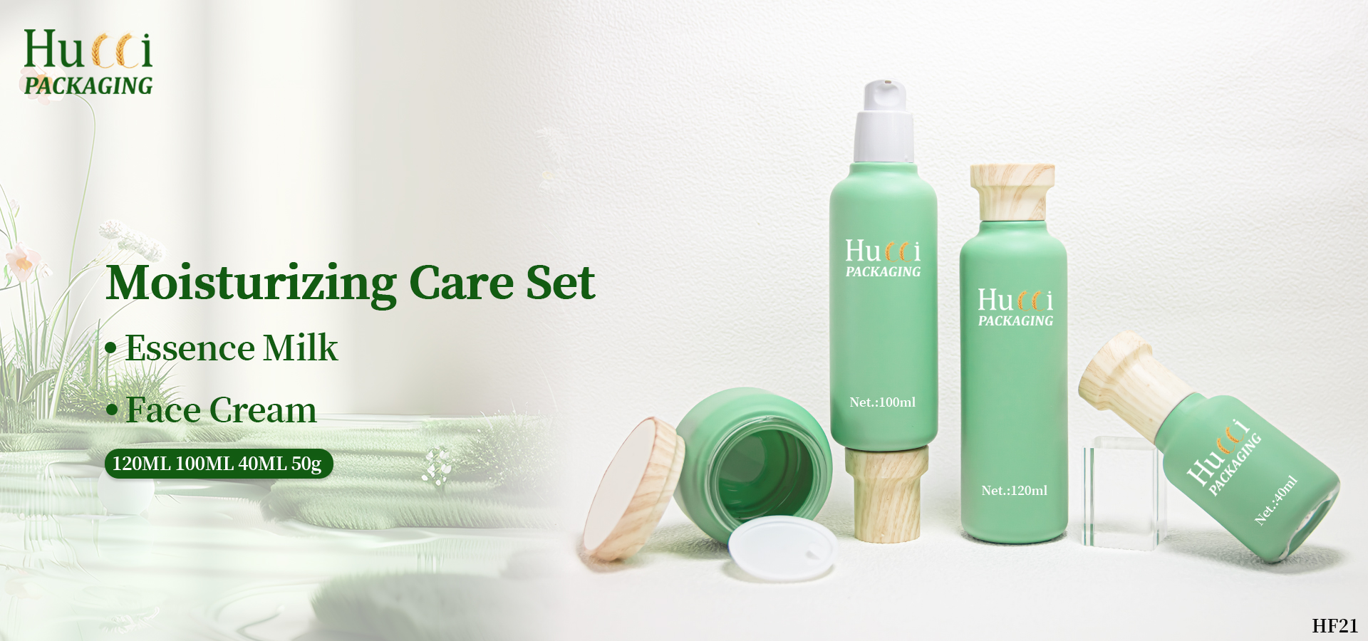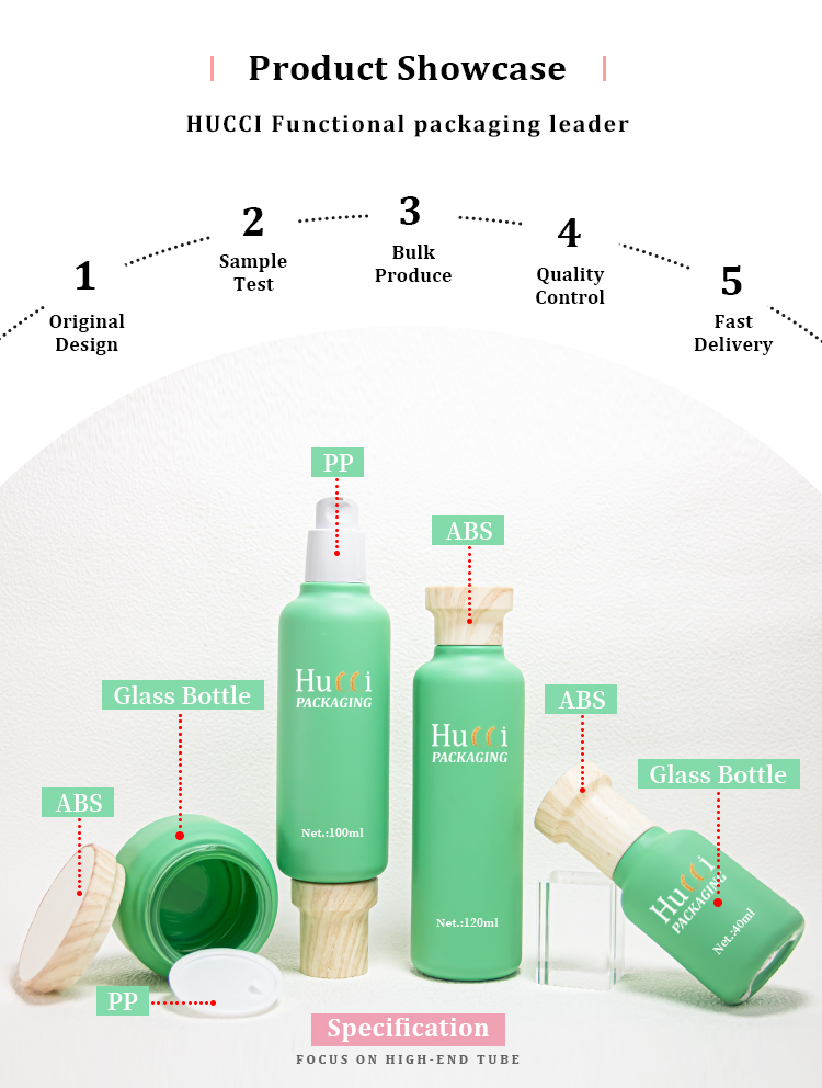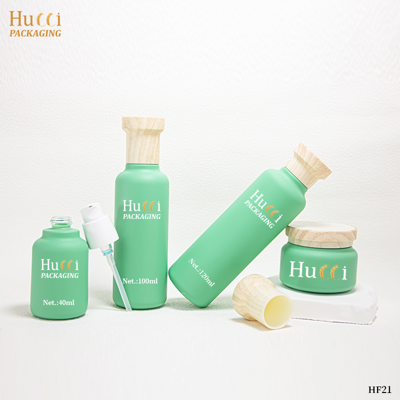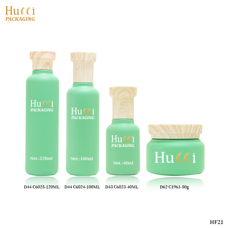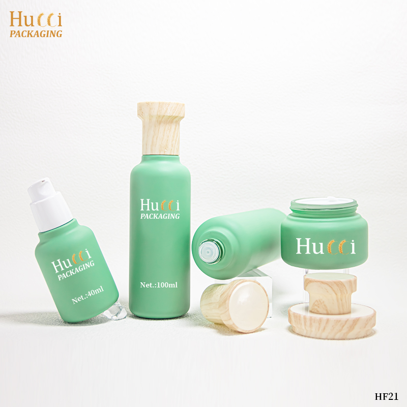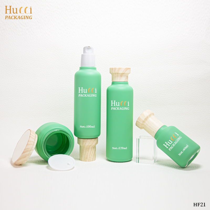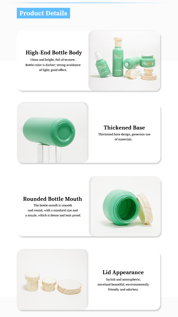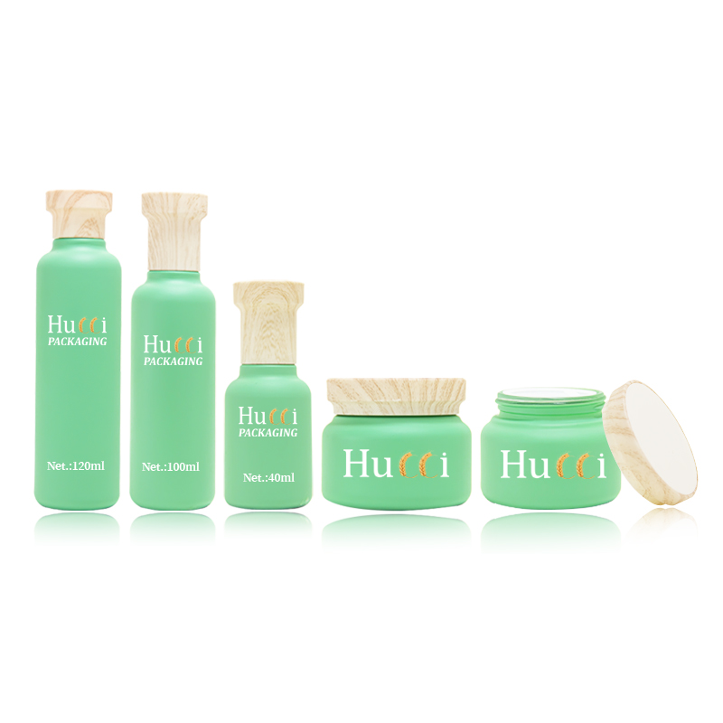 Green Moisturizing Care Set Container ABS Wooden Cover Face Cream/Essence Glass Emty Bottle