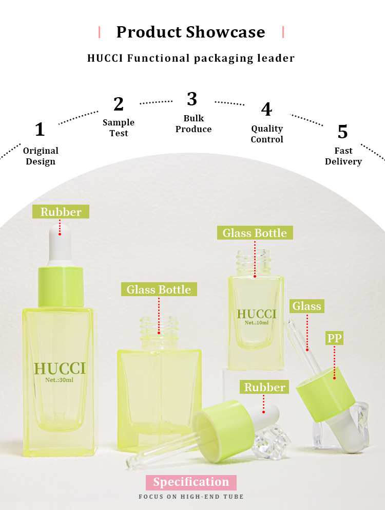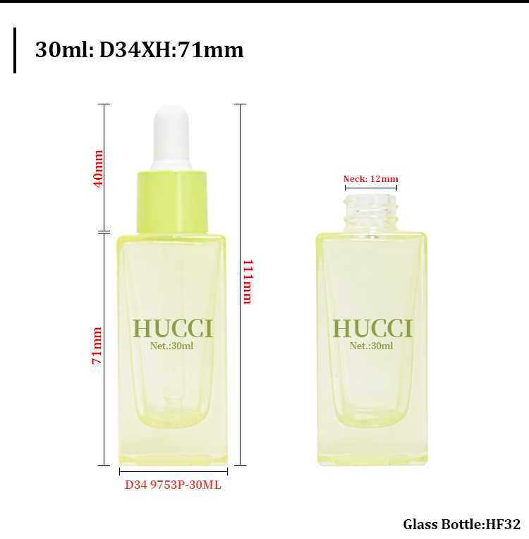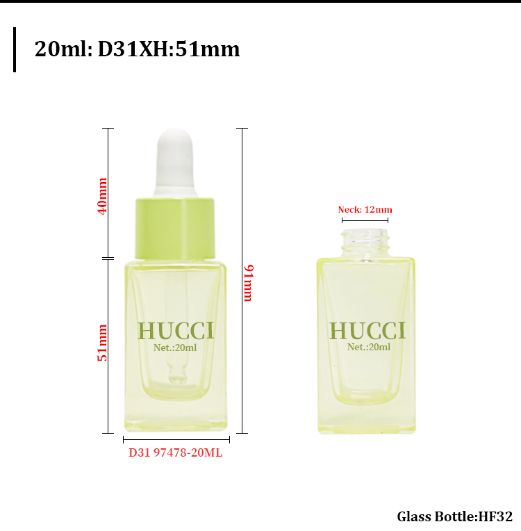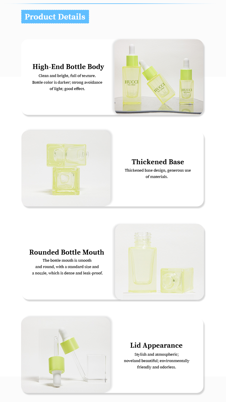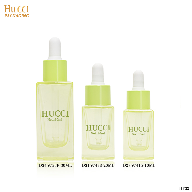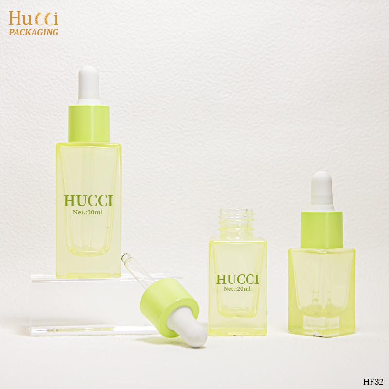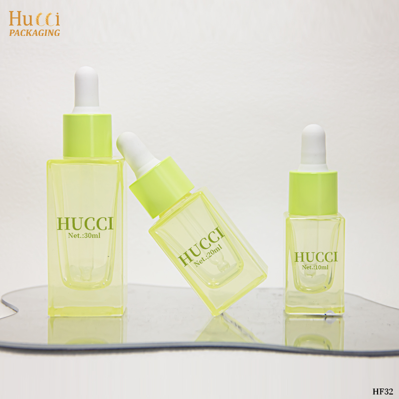 Offer sample service10-30ml Green Square Glass Serum Bottles.