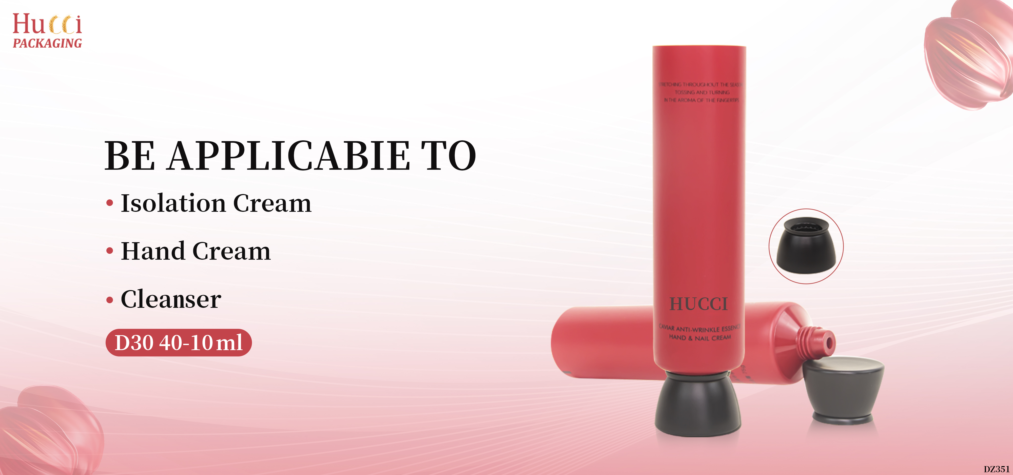 This cosmetic tube is suitable for Isolation Cream, Hand Cream and Facial Cleanser.